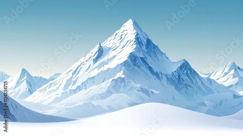 Majestic Snowy Mountain Peak Against Clear Blue Sky
