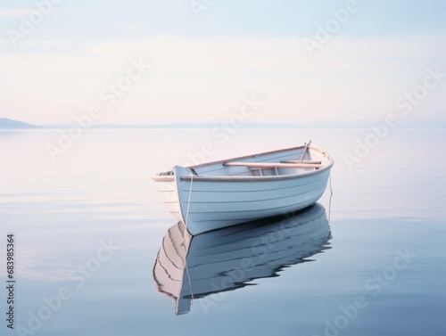 Majestic Solitude: Discover the Serenity of a Lone Rowboat Adrift in Tranquil Waters Generative AI