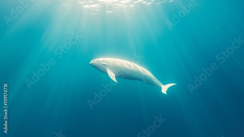 Majestic Spade-toothed Whale Illuminated by Sunlight in Deep Ocean