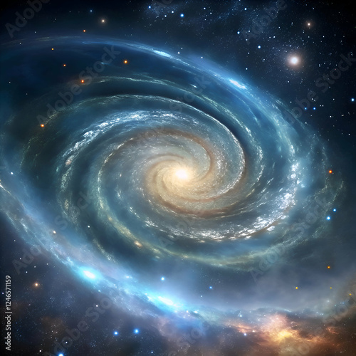 Majestic Spiral Galaxy. A Cosmic Dance of Stars and Nebulae