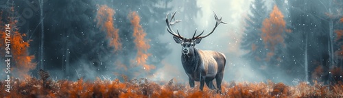 Majestic Stag in Misty Autumn Forest Powerful Wildlife Portrait Concept