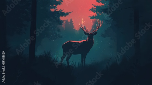 Majestic Stag Stands in Dark Forest Twilight