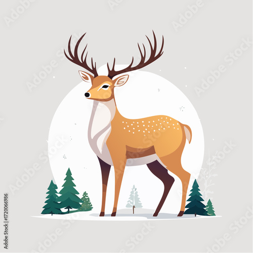 Majestic Stag with Antlers Standing in a Snowy Forest Landscape