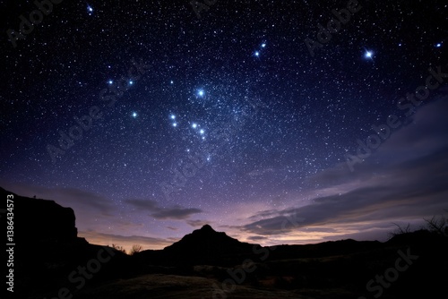 Majestic starry night sky over dark mountain range, for astronomy/space articles