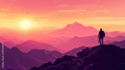Majestic Sunset Over Mountain Peaks: A Hiker's Contemplation