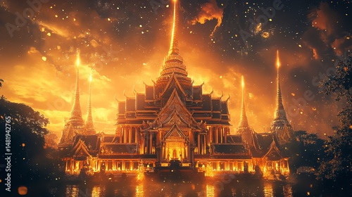 Majestic temple illuminated by a stunning sunset.
