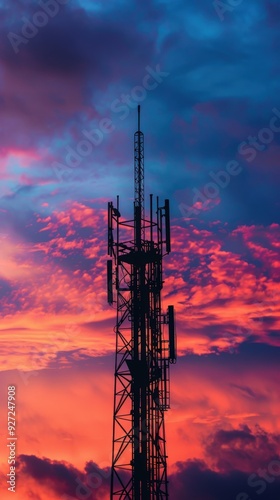 Majestic Tower Silhouetted Against Vibrant Sunset Clouds