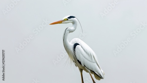 Majestic White Heron Stands Alone Against a Light Gray Background in Natural Lighting Condition