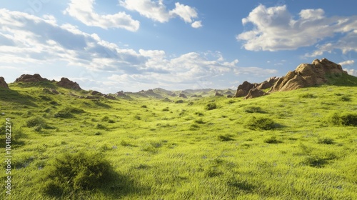 Majestic Wild West Landscape: Rolling Hills, Dramatic Rock Formations & Brilliant Sky | Ultra-Detailed, Cinematic Light