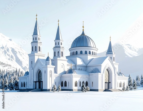 Majestic Winter Church Snow Covered Religious Building in Mountain Landscape