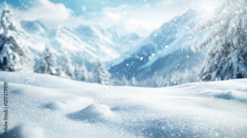 Majestic Winter Landscape with Snowcovered Mountains, ideal for travel or winter sports advertising