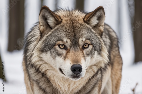 Majestic wolf in snowy forest. (1)
