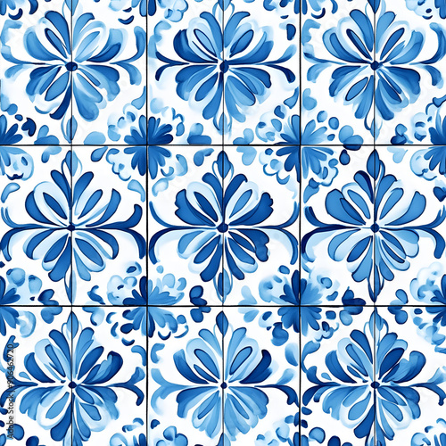 Majolica floral blue folk ceramic tile pattern. Traditional Portuguese and Spain decor