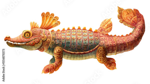 Makara, mythical sea creature, ancient indian style, isolated on white
