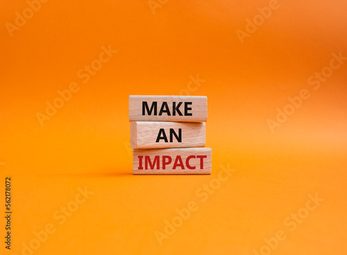 Make an impact symbol. Concept word Make an impact on wooden blocks. Beautiful orange background. Business and Make an impact concept. Copy space