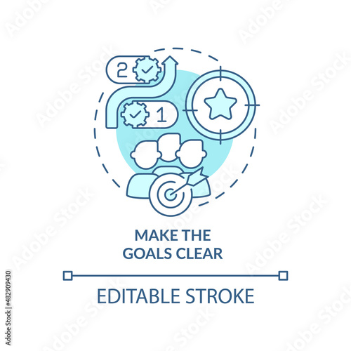 Make goals clear turquoise concept icon. Creating future career path abstract idea thin line illustration. Career dreams. Isolated outline drawing. Editable stroke. Arial, Myriad Pro-Bold fonts used
