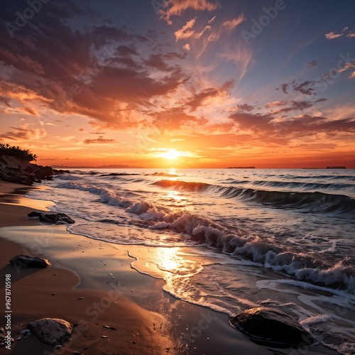 make the beach sunset natural scenery realistic and stylish