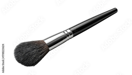 Makeup brush, angled, black handle, silver ferrule, fluffy