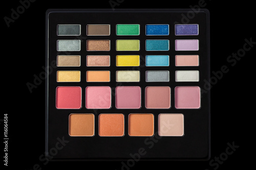 Makeup palette of colorful eyeshadows isolated on black backgrou