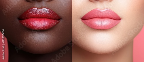 Makeup Trends Concepts. Stylish lips in contrasting shades on diverse skin tones.