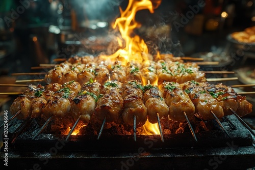 Making Traditional Indonesian Chicken Satay with Charcoal Grilling in Rustic Street Food Style