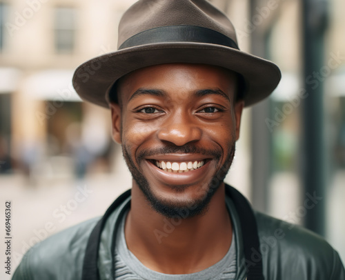 male african american man smiling in public