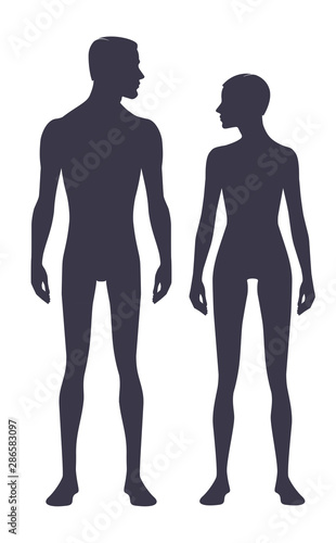 Male and female body silhouette with head in profile. Isolated perfect image symbols man and woman on a white background. Illustration