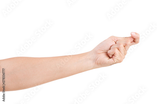 Male asian hand gestures isolated over the white background. HOOK POSE.