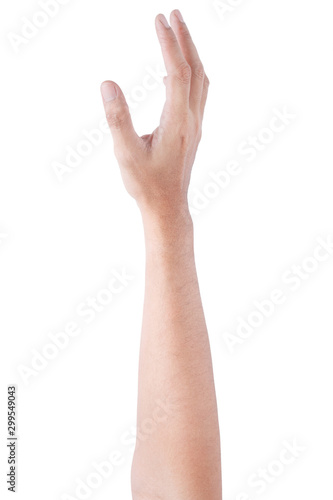 Male asian hand gestures isolated over the white background. Soft Grab Action.