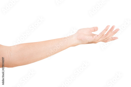 Male asian hand gestures isolated over the white background. TOUCHING POSE.