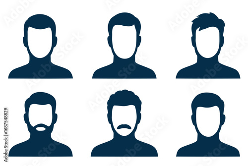 Male avatar icons set — vector user profile silhouettes, beard & hair User profile avatar set — flat male silhouettes, bearded & mustache Men profile placeholders — head icons pack, editable vector