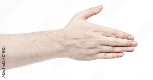 Male caucasian hands isolated white background showing various finger gestures. man hands showing different gestures