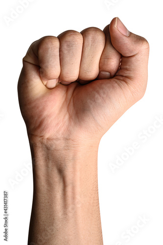Male caucasian showing fist hand isolated on a white background.