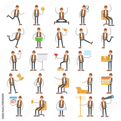 male characters in different poses illustration set