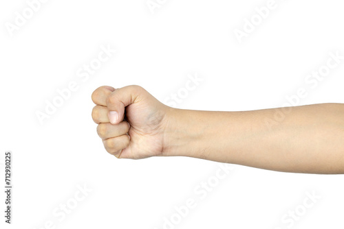 Male clenched fist isolated on a white background with clipping path. Man hand with a fist. Alpha. Protest.