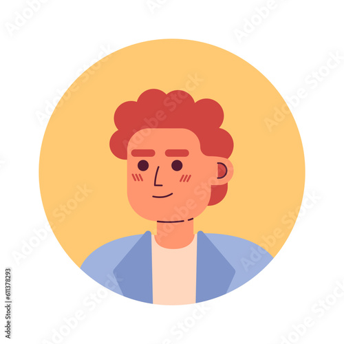 Male curly redhead employee semi flat vector character head. Office worker man portrait. Editable cartoon avatar icon. Face emotion. Colorful spot illustration for web graphic design, animation
