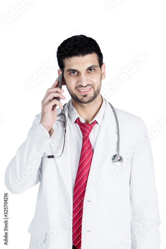 Male doctor speaking on his cellphone