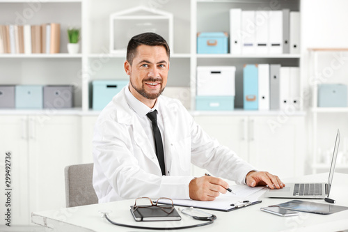 Male doctor working in clinic