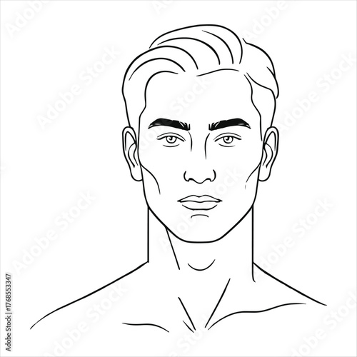 Male Face Line Art Minimalist Black and White Portrait Illustration