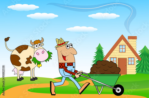 male farmer pushing a cart with black earth