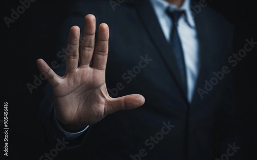 Male hand displays a stop gesture, highlighting the importance of halting violence.