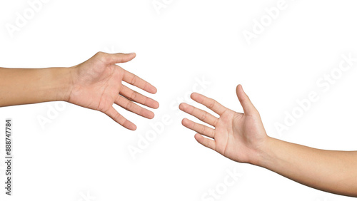 Male hand extending a helping hand on white background, hand isolated on white background.