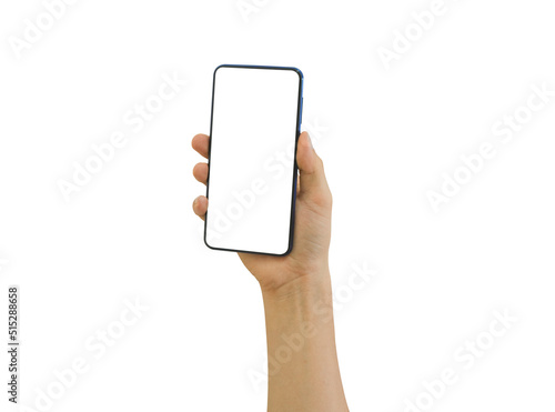 Male hand holding mobile smartphone with blank screen isolated on white background. clipping path include