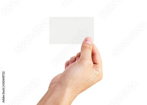 Male hand holding virtual white business card