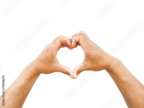 Male hand making heart sign Valentine's day concept isolated on white background.