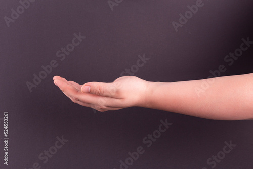 male hand on dark black background. Fashionable spring summer mockup. copyspace