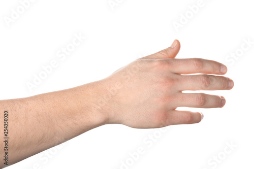 Male hand on white background