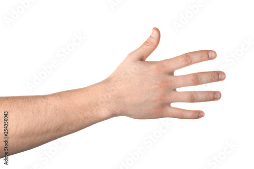 Male hand on white background