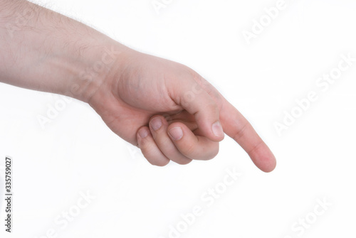 Male hand points with index finger