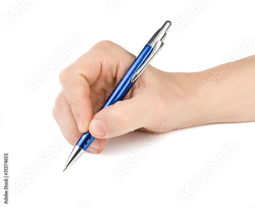 male hand with pen isolated on white